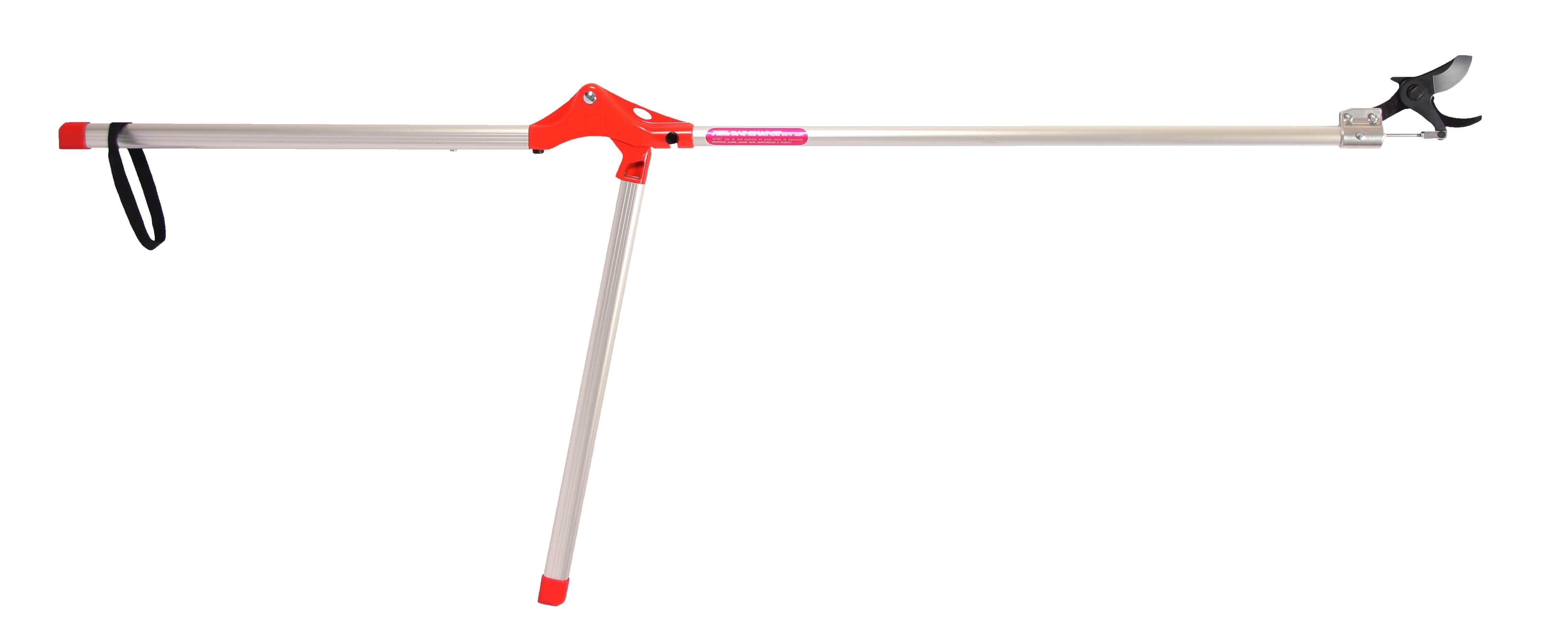 Essa tesoura de poda alta possui 1,80 m de altura e foi projetada especialmente para poda pesada, sendo capaz de cortar galhos com até 4,5 cm de diâmetro.